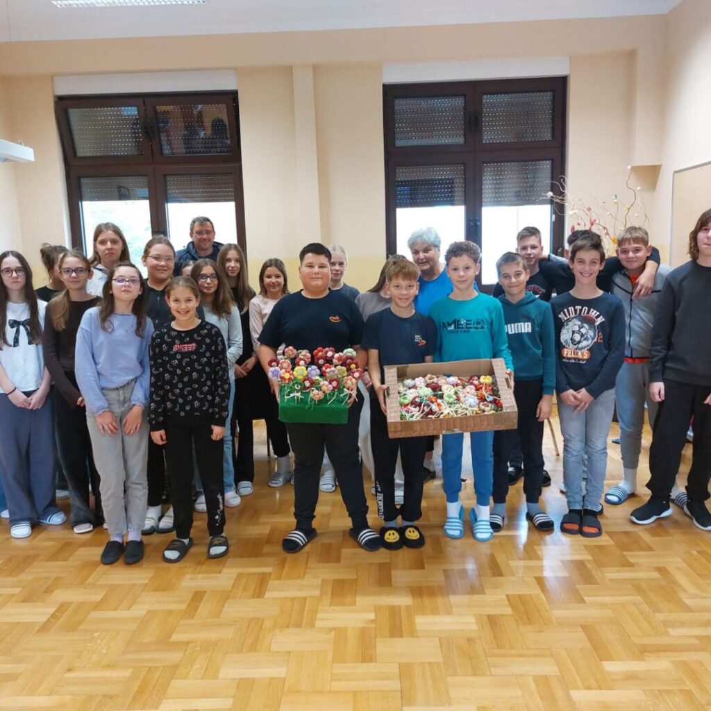 Vrijedne ruke članova školske Volonterske grupe “Pomagalice”, pod mentorstvom Ivanke Kavran i učiteljice Ivane Beti, izradile su čak 101 šareni tekstilni cvjetić. Svaki cvjetić, postavljen na prirodnu obrađenu grančicu, namijenjen je kao znak zahvalnosti i maleni dar za sve sudionike akcije dobrovoljnog darivanja krvi.