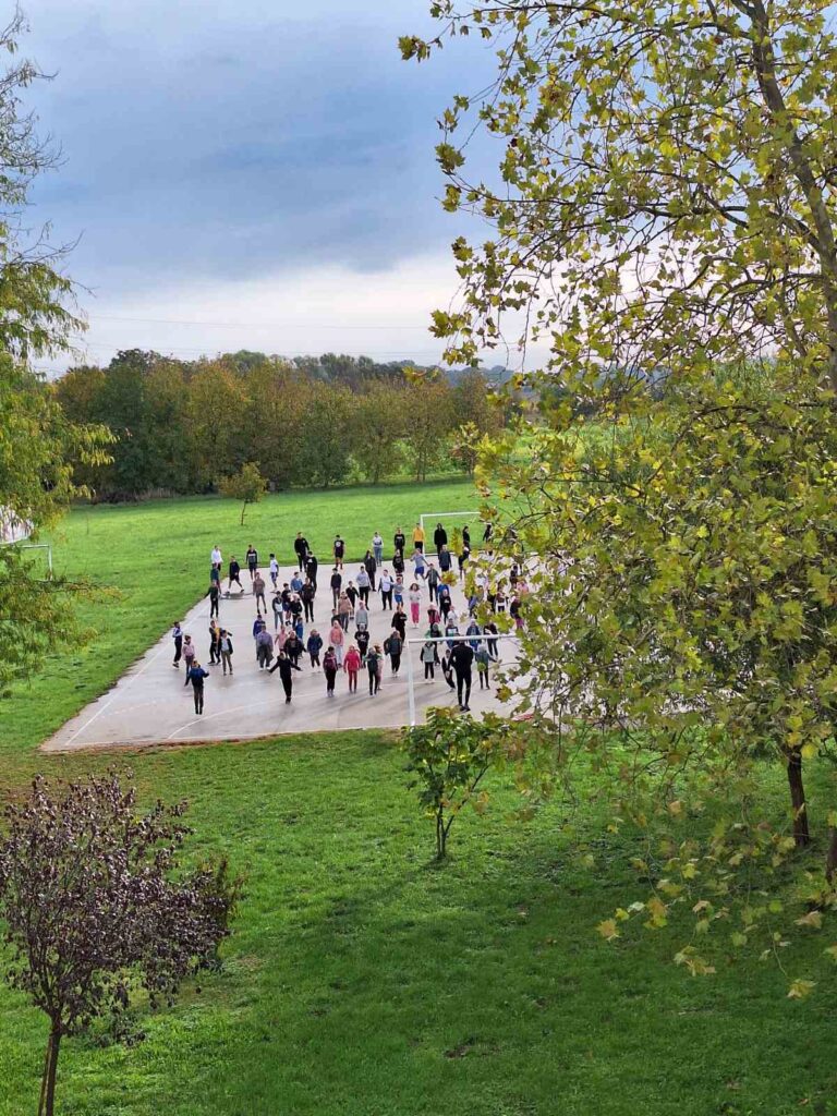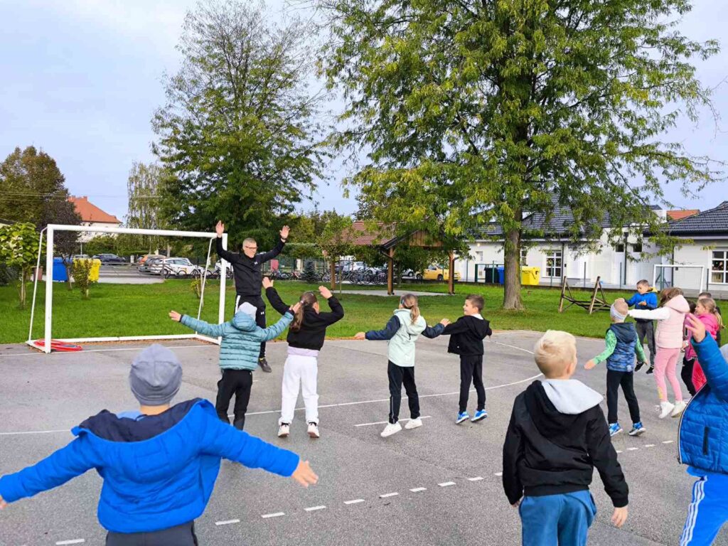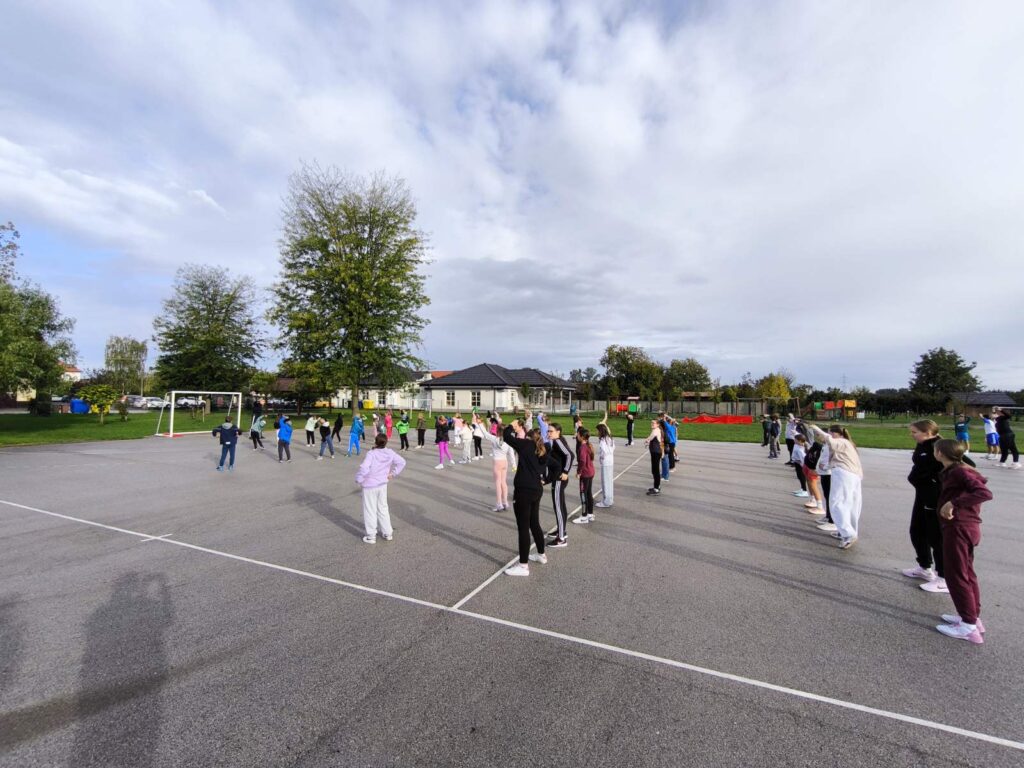 Nakon inspirativnog susreta sa Sarom, svi učenici su se zajedno zagrijali na vanjskom sportskom igralištu kroz razne elementarne igre koje su nas zabavile i potaknule na kretanje. Zabavne i korisne vanjske aktivnosti vodio je učitelj tjelesne i zdravstvene kulture, prof. Damir Žegarac.